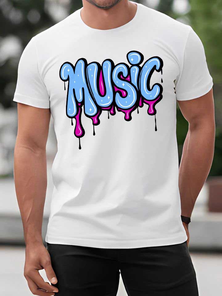 Express your rhythm and vibe with Naamwalitee’s “Music” customized white round-neck T-shirt.