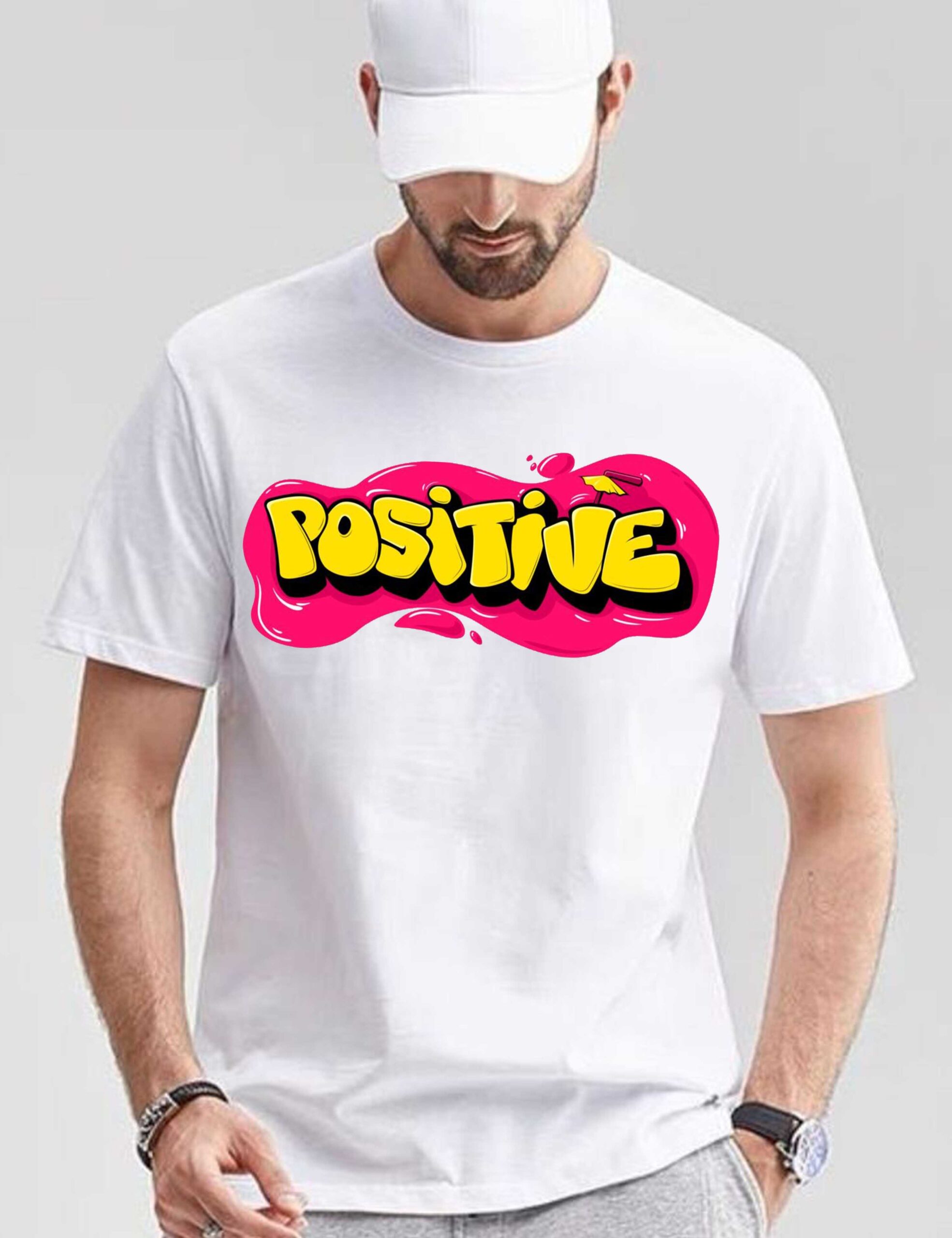 Crafted from premium 180 GSM Sarina fabric, this T-shirt blends comfort, durability, and style effortlessly. The stylish font design of the word “Positive” features a bold dark yellow color with a dark pink outline, giving it a bright and energetic appeal.